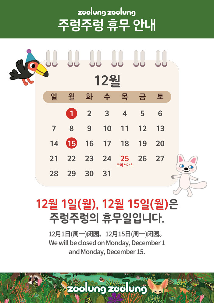 주렁주렁은 동물원을 뜻하는 ZOO와 삭막한 도심의 한가운데 산소를 공급하는 녹지대를 뜻하는 Green Lung의 합성어 입니다.